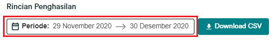 Kamu dapat langsung melihat data keuangan seperti daftar pesanan yang belum dibayar dan akan dibayarkan dalam periode waktu yang kamu pilih. Data yang disediakan juga menampilkan total pendapatan yang kamu terima. Cara untuk melihat atau men-download data keuangan seperti ini: