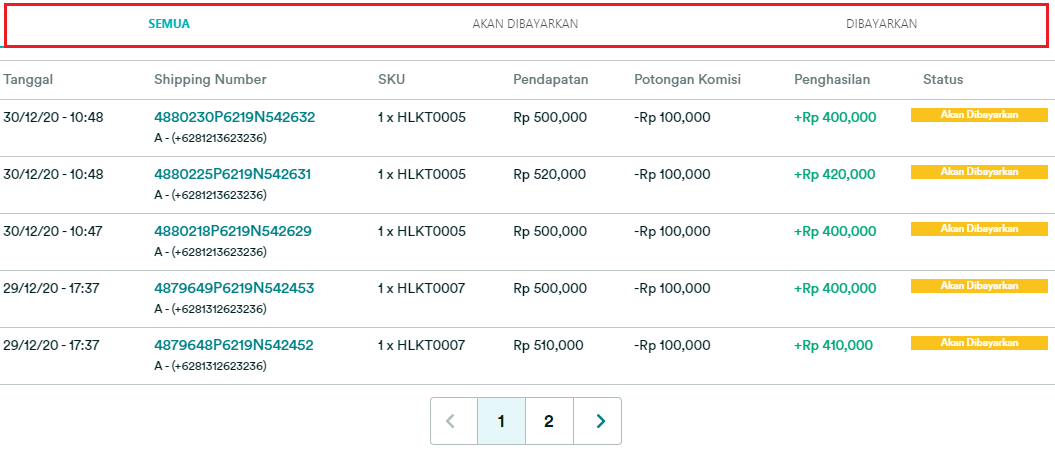 3. Klik bagian “Semua”, “Akan Dibayarkan”, atau “Dibayarkan” sesuai kebutuhan.